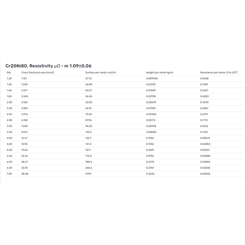 - Käyttöalueet: Teollisuuden sähköuunien lämmityselementtien valmistus; Kodinkoneet (liedet, keittolevyt jne.); E-savukkeiden lämmityspatteri.